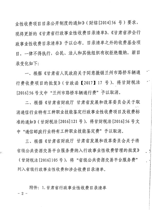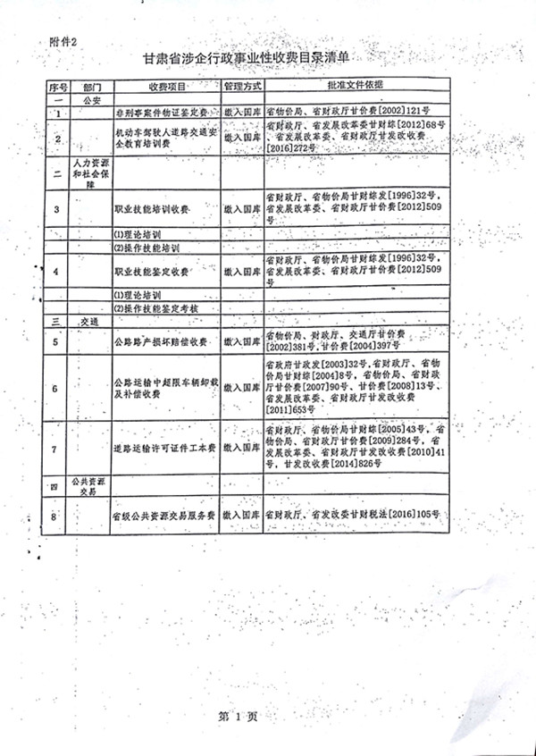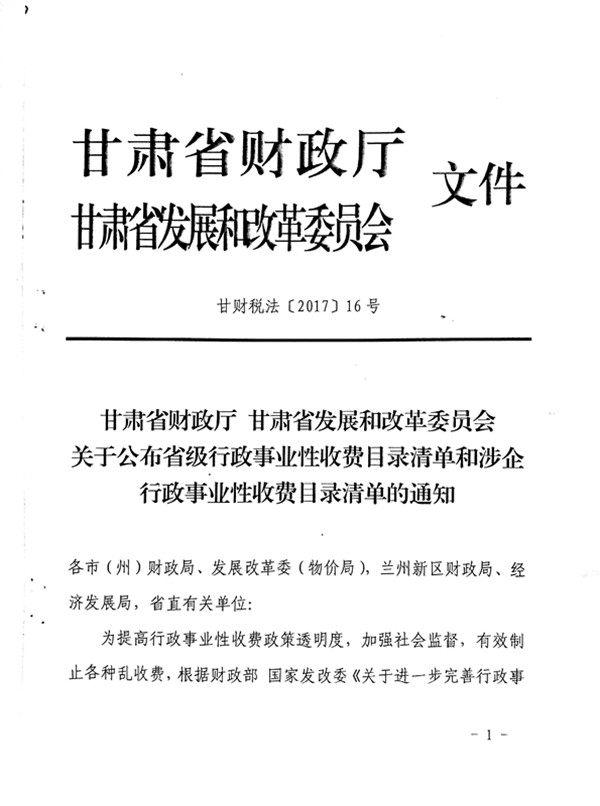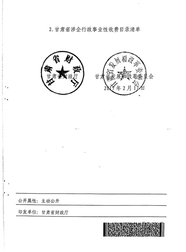甘肃省涉企行政事业性收费目录清单