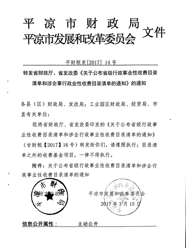 转发省财政厅省发改委 关于公布省级行政事业性收费目录清单和涉企行政性收费目录清单的通知的通知
