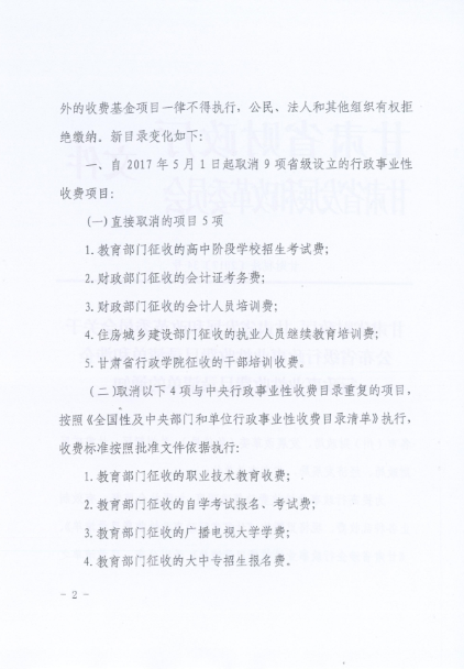 平凉市财政局 平凉市发展和改革委员会转发 《甘肃省财政厅 甘肃省发展和改革委员会关于公布全国政府性基金目录清单 全国性及中央部门和单位行政事业性收费目录清单 全国性及中央部门和单位涉企行政事业性收费目录清单 全国性考试考务费目录清单的通知 》的通知